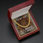 This To My Son - Be A Warrior, Not A Worrier - Cuban Link Chain Necklace comes packaged in our Mahogany Style Luxury Gift Box for easy gifting.